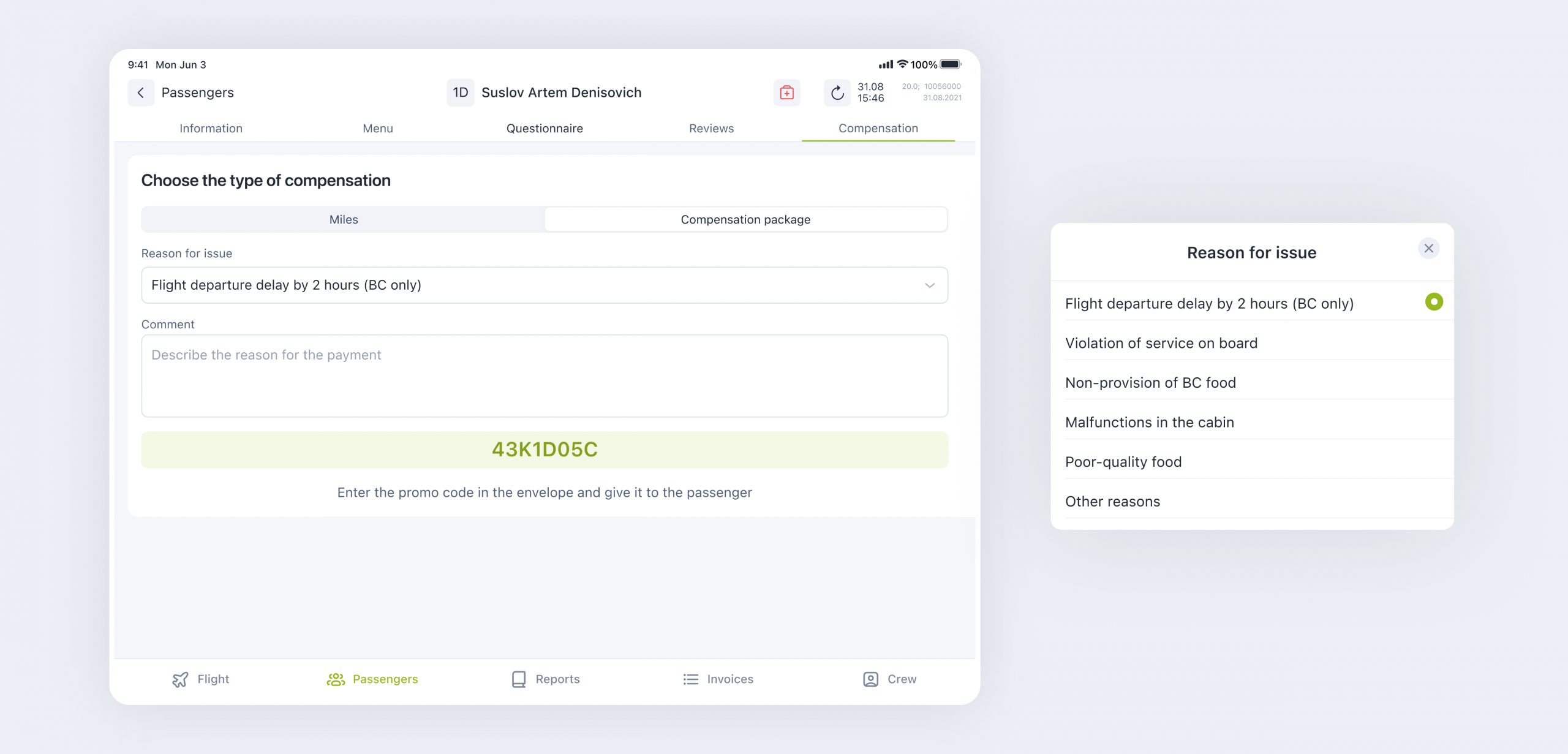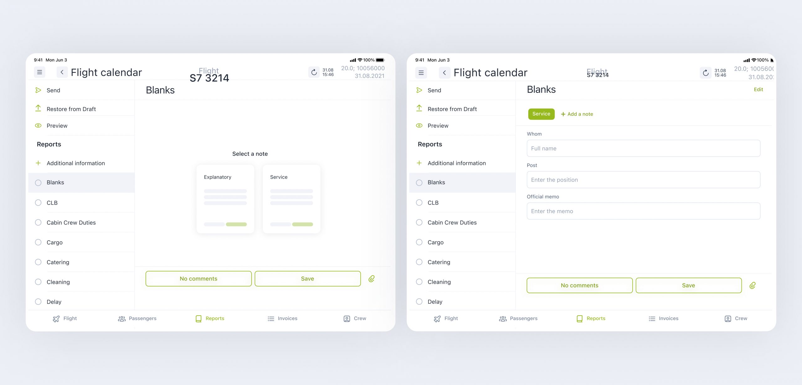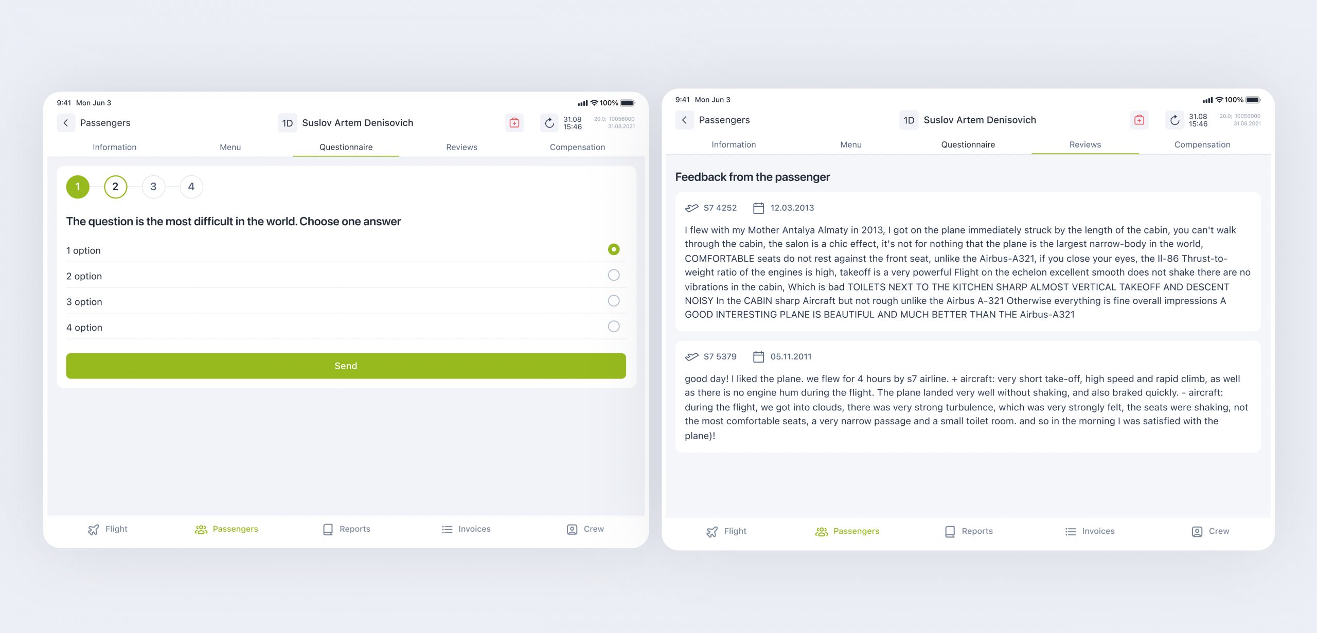 A flight attendant does not need to carry reports to the administrator after the flight anymore; everything happens via a new interface that sends reports directly to the admin panel. To ensure that it’s fast and convenient, we carried out numerous usability tests.
