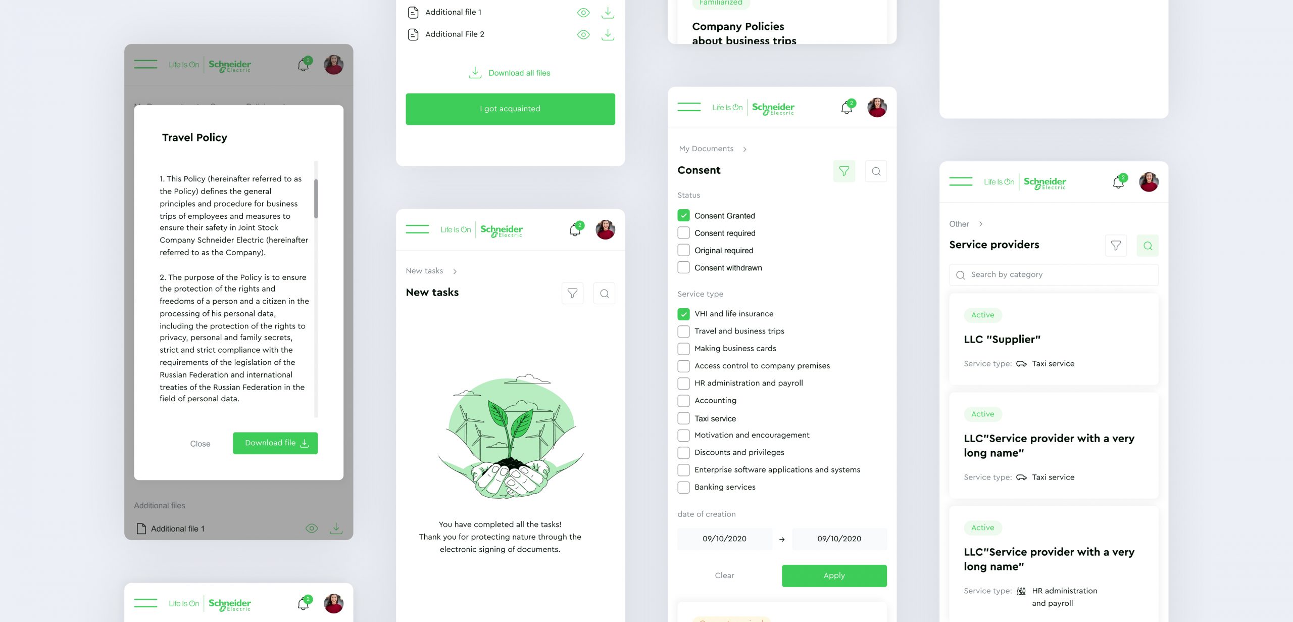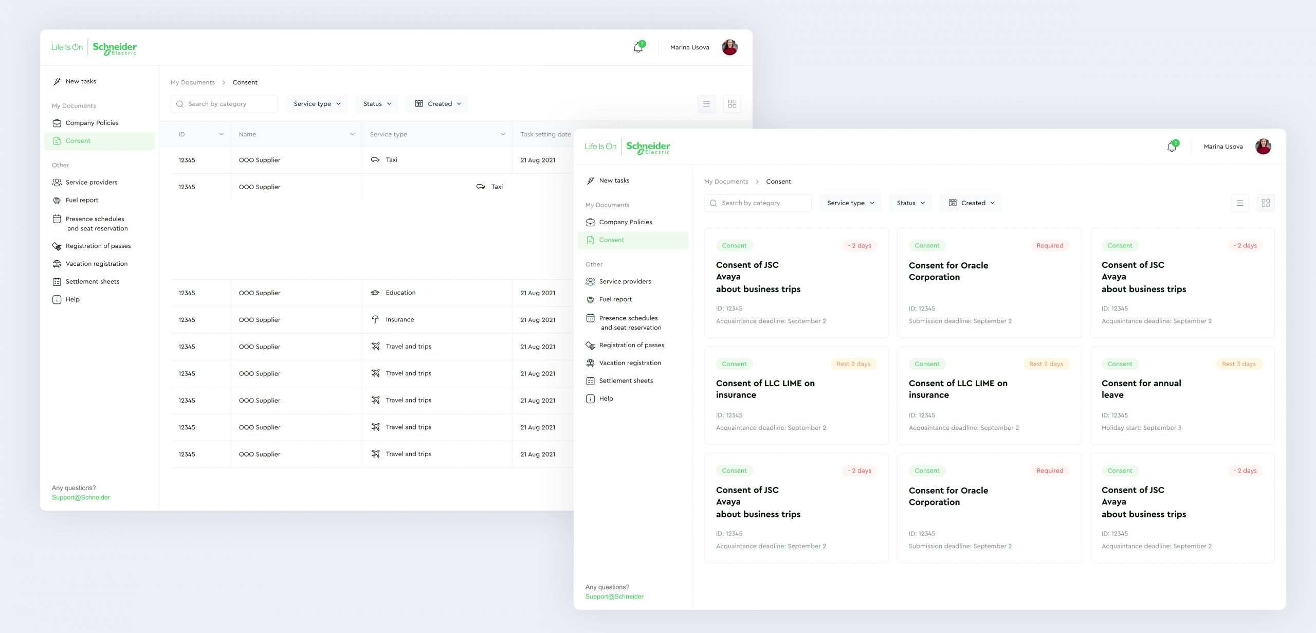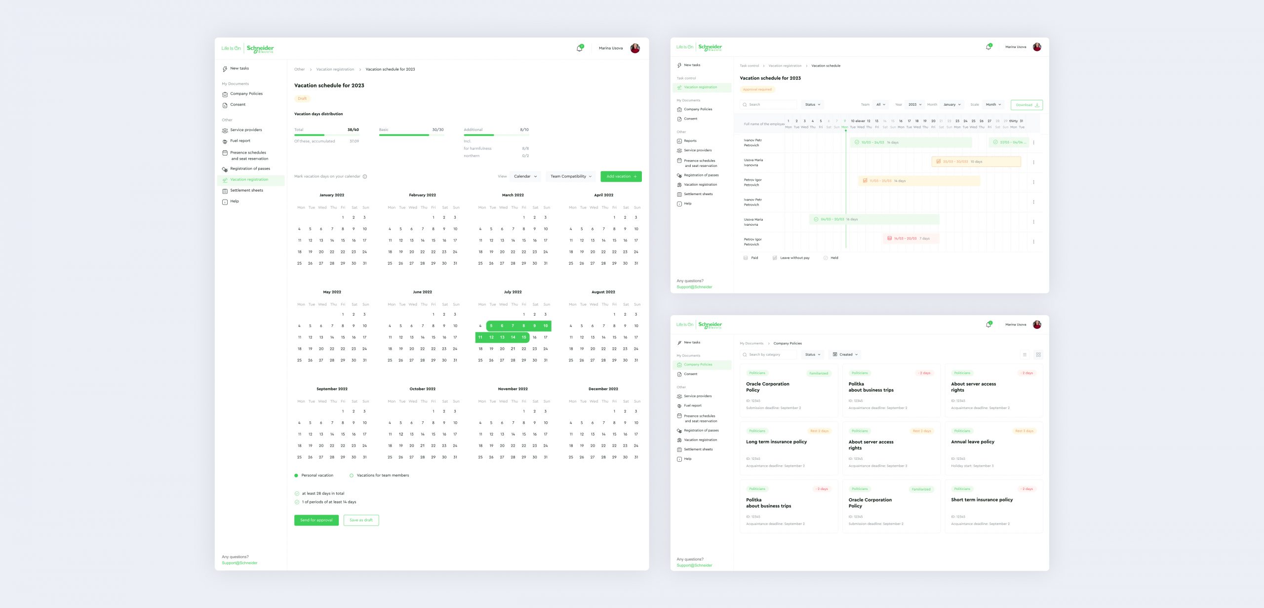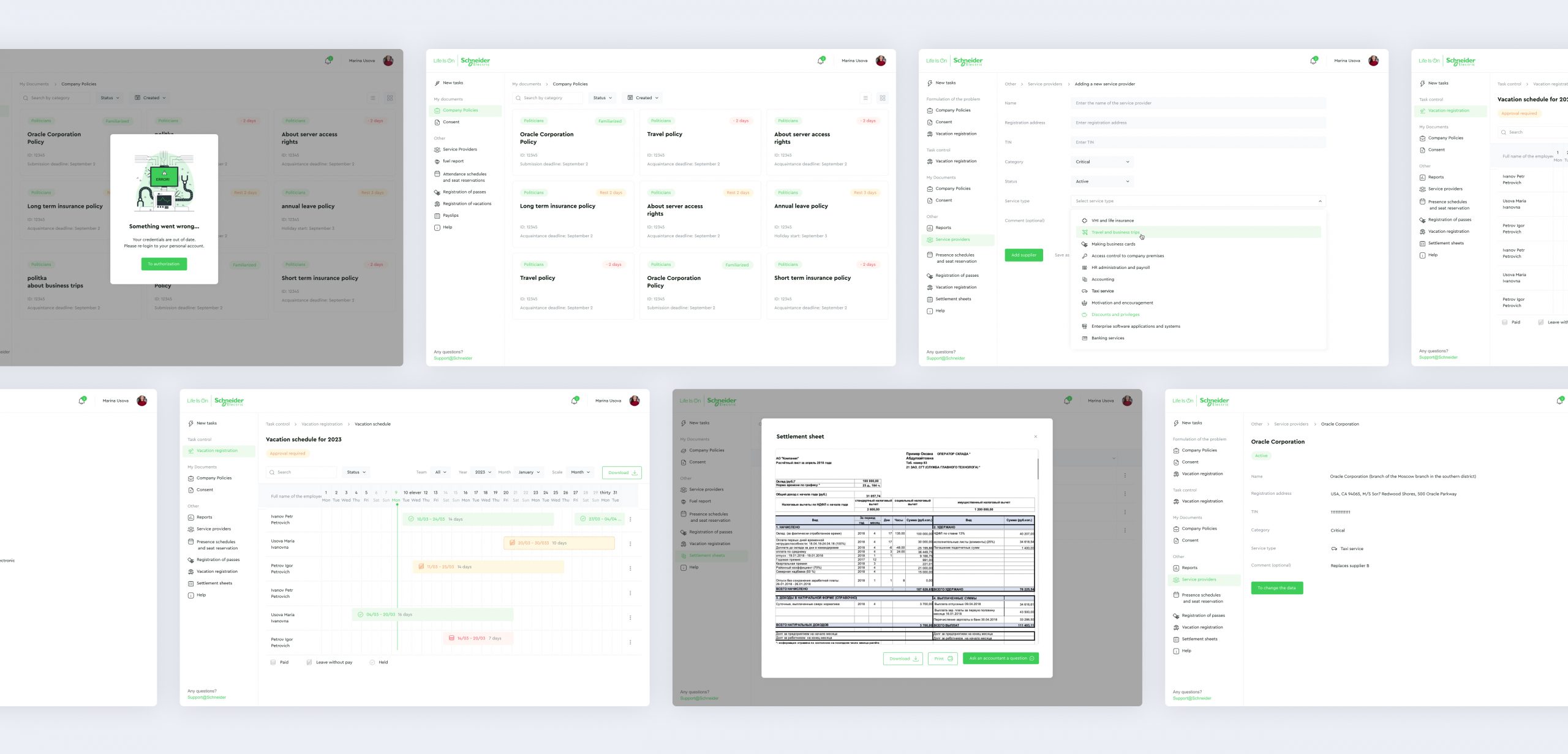 Schneider Electric employees used inconvenient tools with an outdated interface. For majority of simple organizational tasks employees had separate programs. One tool to request a vacation, another to book a workplace, and the third one to create a fuel report, etc.